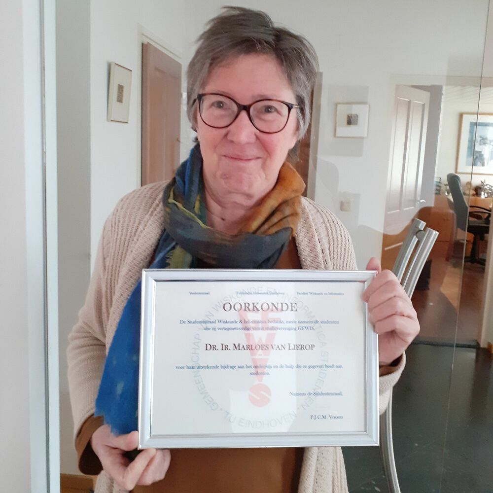 Marloes van Lierop heeft zich - redelijk onverwacht - nog zeer nuttig gemaakt tijdens de afbouwfase van haar carrière. Ze is ingevallen als opleidingsdirecteur bij de bachelor Data Science. Dat was op stel en sprong nodig en met haar ervaring - ze was hiervoor acht jaar opleidingsdirecteur van Computer Science en Applied Mathematics - en de tijd die ze eigenlijk nog wel had, bleek zij daarvoor de meest geschikte persoon. “Een week nadat ik dit toegezegd had, kwamen we in de eerste lockdown vanwege corona. Maar goed, ik heb dit tot september 2020 gedaan en daarna heb ik nog een curriculumherziening geleid en de zelfevaluatie geschreven met het oog op de accreditatie van de opleiding.”