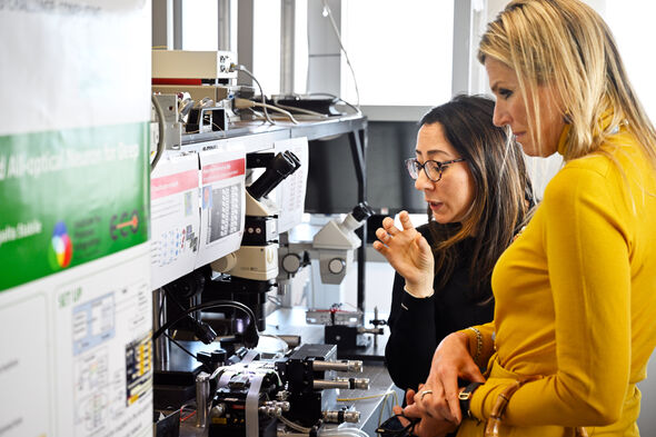 Máxima bezocht ook het lab van universitair hoofddocent bij Electrical Engineering Patty Stabile, die onderzoek doet op het gebied van neuromorfe fotonica. Ze vertelde de koningin dat een supercomputer hetzelfde aantal taken kan uitvoeren als hersenen, maar daar vele malen meer energie voor nodig heeft. Geïntegreerde fotonica kan dat probleem oplossen, omdat het de verwerking en overdracht van een bijna ongelimiteerde hoeveelheid data op lichtsnelheid kan verwerken en overdragen. “De koningin was onder de indruk van de veelbelovende uitkomsten van ons onderzoek. Ik vond het fascinerend dat ze de link legde met de neurowetenschap. Het liet zien dat ze doorhad hoe multidisciplinair dit onderzoeksgebied is.”