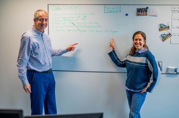 Het is een respectabele – en vast ook werklustverhogende – lijst: de medewerkers van het Project Development Office (PDO) bij IE&IS hebben alle 24 gehonoreerde onderzoeksprojecten van 2022 genoteerd op een groot whiteboard in hun werkruimte in Atlas. Zo financierde NWO bijvoorbeeld de projecten KIC Leven met Dementie en Dinalog Zero Operator Logistics, en Horizon Europe stak budget in onder andere COOPERATE en Fluently, waarover je meer leest in de kaders onder dit artikel.