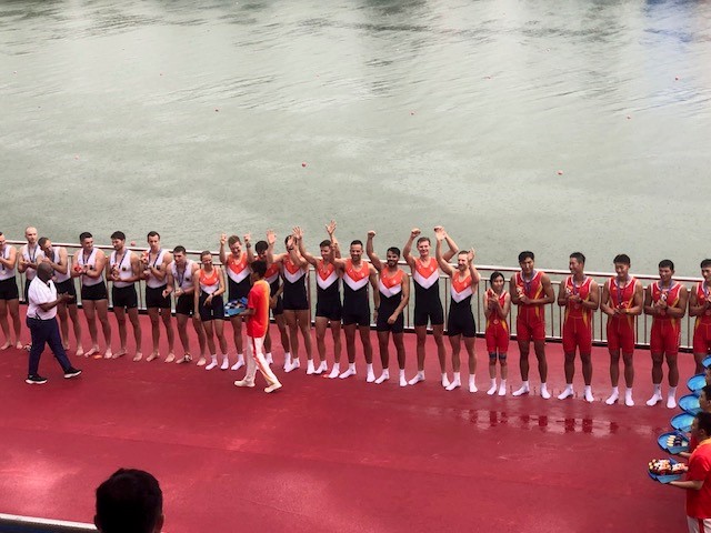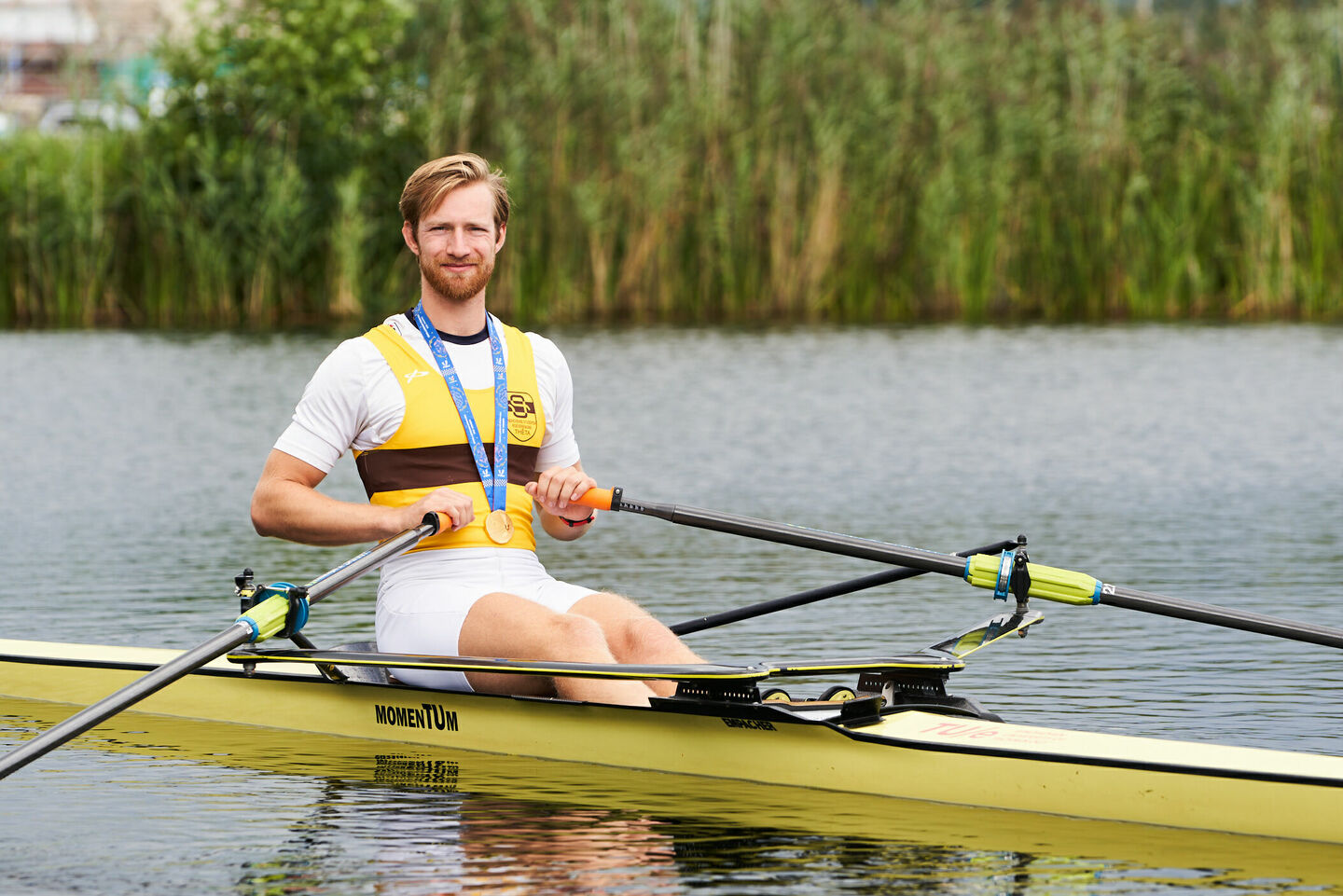 Wat de wereldtitel vooral symboliseert voor Robert is opluchting met een grote O. “In theorie zou ik in 2021 gaan. Maar omdat het in China was in de coronaperiode is het uitgesteld. Het jaar erop had ik me weer gekwalificeerd, en ging het weer niet door. Nu is het in 2023 eindelijk doorgegaan. Dat was mijn laatste kans, want de volgende Universiade ben ik te oud (max 26 jaar, red.). De onzekere periode is voorbij en we hebben die ook nog zo mooi kunnen afsluiten.” Als boegman zat Robert met zeven andere roeiende studenten (“en ook nog een stuurtje, ook student”) van andere universiteiten in de winnende boot. In vijfenhalve minuut (5:35.60) roeiden ze tweeduizend meters.