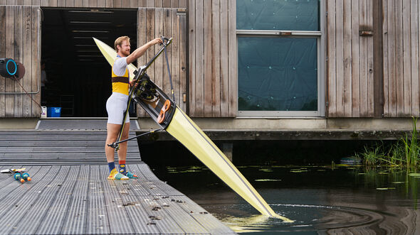 Een ander geluk is dat Robert ook in de avond kan trainen hier, ook al is het donker. Het kanaal is zo smal dat er geen scheepvaart met motor mag varen, dus is het veilig. “Er is ook een nadeel aan het smalle water; je kan niet sparren of wedstrijden organiseren. Dat doen we dan in Tilburg of Rotterdam.”