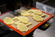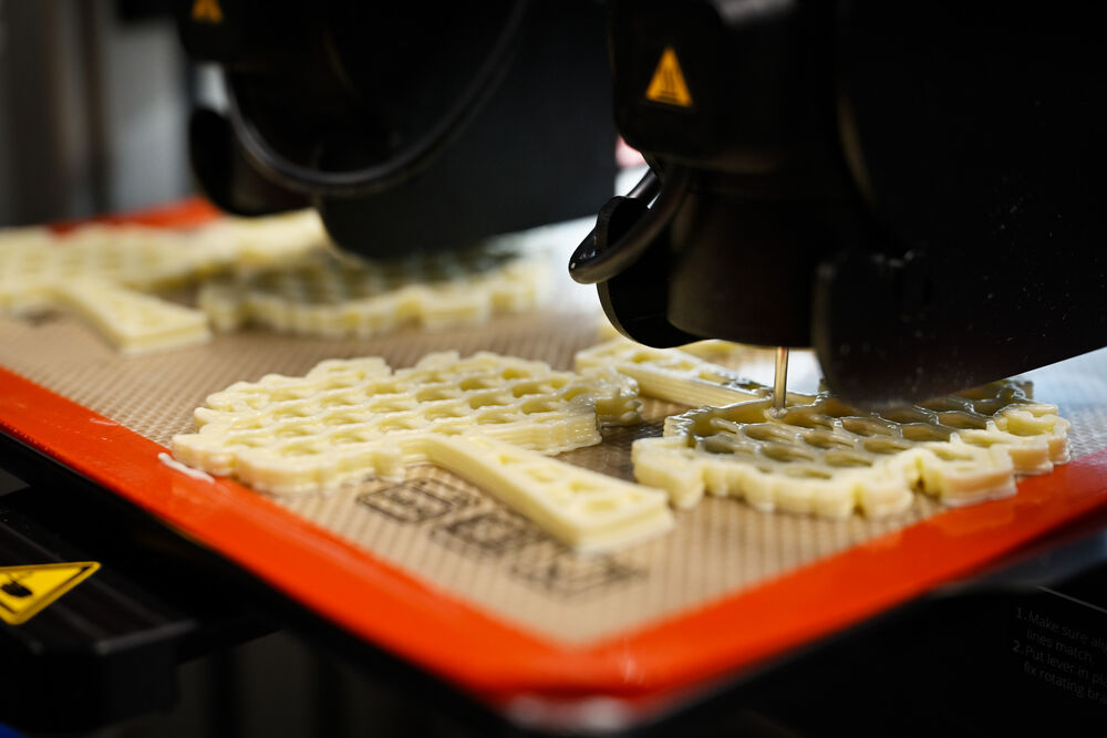 Het klinkt allemaal redelijk simpel, toch zitten er ook wat haken en ogen aan. “Met plastic weet je precies wat het materiaal gaat doen”, vervolgt hij. “Dat komt omdat zijn eigenschappen – zoals de consistentie of de snelheid waarmee het afkoelt - constant zijn, waardoor je het proces onder controle hebt.” Met voeding is het veel ingewikkelder. “Er zijn veel variabelen die je op de 3D-foodprinter kunt afstellen, zoals hoeveel puree hij precies moet uitpersen en onder welke druk. Het is een kwestie van experimenteren en aanpassen om de perfecte print eruit te halen.”