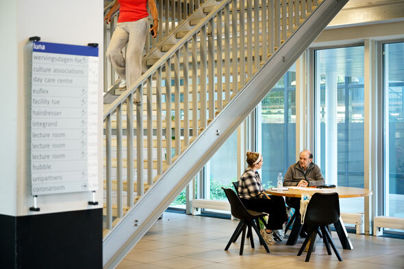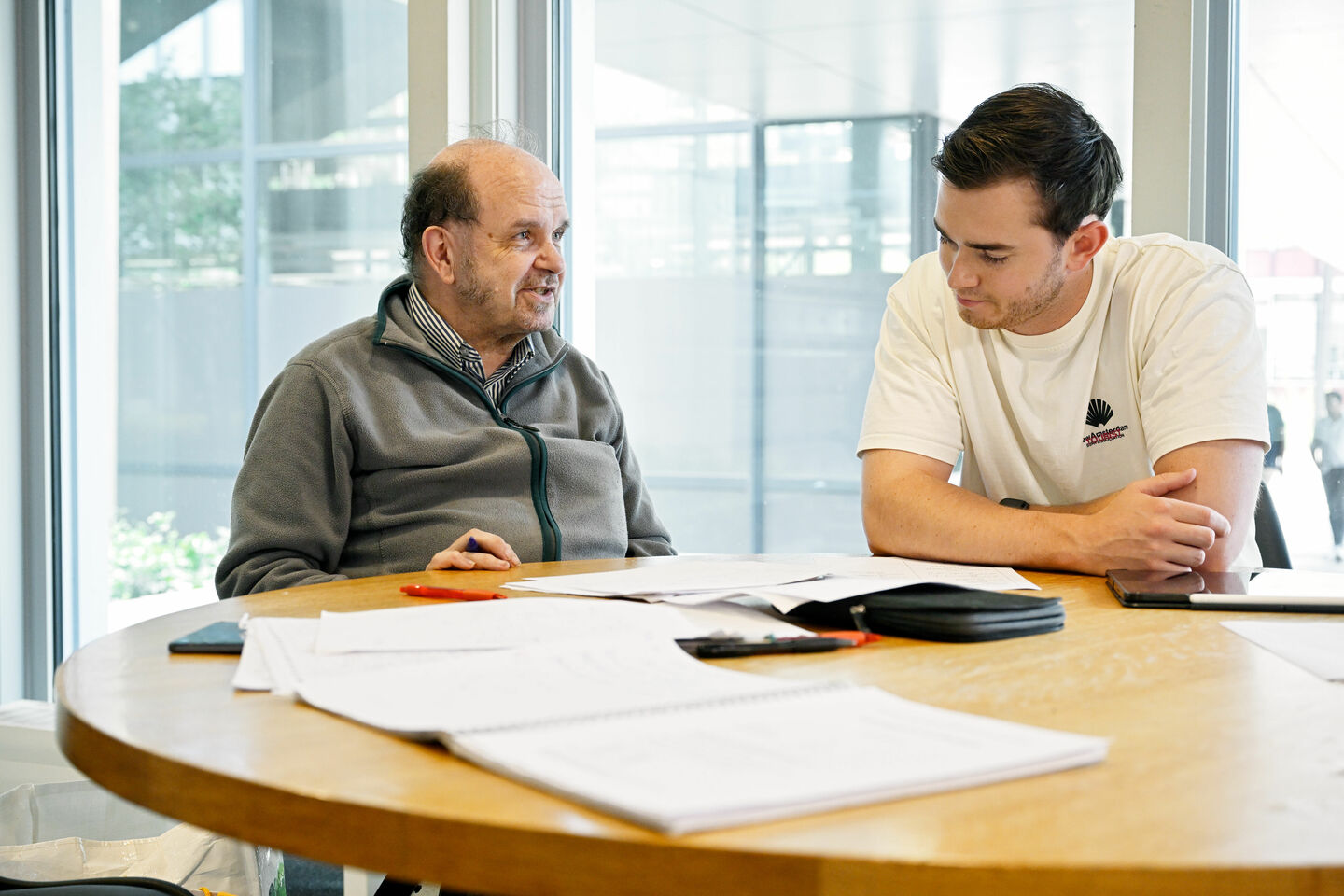 Zonder bèta-achtergrond en met gezonde spanning schuif ik aan. De man onder de trap zit al klaar met pen en papier. Zes dagen in de week onder de trap in gebouw Luna, tegenover de Spar. “Ik zou liever weer lesgeven in een normaal lokaal met een bord, maar dat mag niet van de universiteit. Toch geeft hier zijn (de ruimte onder de trap in gebouw Luna is openbaar, red.) me in ieder geval ritme, houvast. En ik kan veel studenten en onderzoekers helpen. Dat heb ik altijd graag gedaan.”