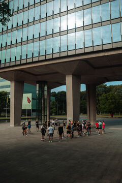 “Wesley heeft wat motivatie nodig", klinkt het nog geen minuut later, waarop de groep begint te klappen en juichen. Een laatste rondje om het Auditorium gaat van start en tijdens de laatste 250 meter gaat het tempo zelfs omhoog. We zetten de eindsprint in.