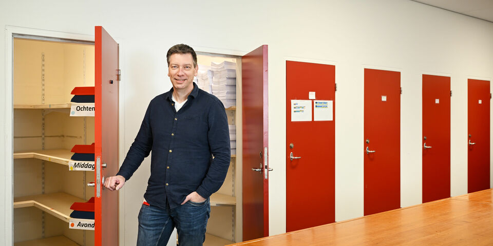 “Dat we het iedere keer weer voor elkaar krijgen. Ik ben daar elke keer weer verbaasd over. Soms denk ik: dit wordt een ramp, maar dan lukt het toch. Afgelopen zomer bijvoorbeeld was het Auditorium gesloten vanwege werkzaamheden. Het Auditorium is onze basis, van daaruit starten we de tentamens op, melden de surveillanten zich voor aanvang, worden de tentamens geleverd en opgeslagen en staat alle voorraad. We hebben toen twee tentamenperiodes vanuit Metaforum gewerkt, daarvoor moesten we alle spullen verhuizen, werkinstructies aanpassen en surveillanten informeren. Dat was een hele organisatie. Dan ben ik trots op dat dat allemaal goed verlopen is.”