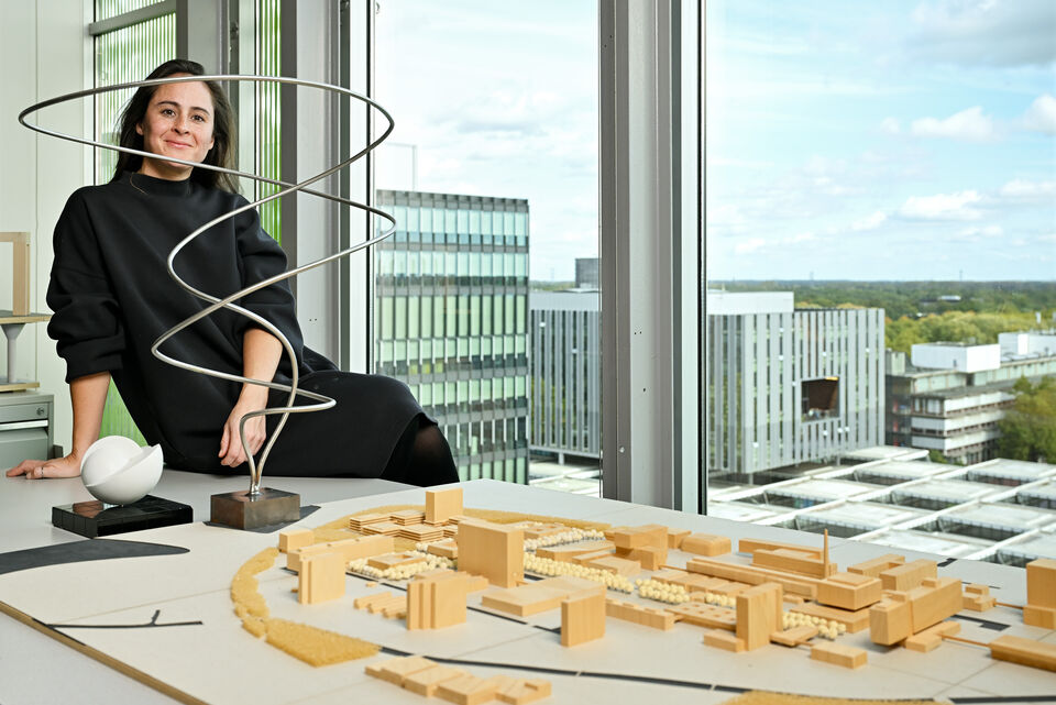 Daarnaast ben ik gefascineerd door Margot Zanstra. Er staat een sculptuur van haar in de buitenruimte tussen Luna en Impuls, deze is gemaakt in samenwerking met medewerkers van de faculteit Technische Natuurkunde. Volgend jaar ga ik meer onderzoek doen naar dit werk en dan komt meer informatie over haar online. Maar mijn long-term love is toch wel Hella Jongerius. Haar werk in het Neuron-gebouw is mijn debuut geweest.”