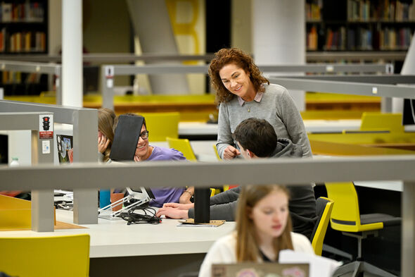 “Ik zie mezelf echt als de gastvrouw van de bieb. Dat houdt in dat ik het eerste aanspreekpunt ben voor iedereen die gebruikmaakt van de bibliotheek. Zowel in het echt aan de balie, als voor digitale vragen die we per mail ontvangen. Dat zijn bijvoorbeeld vragen over het uitlenen van boeken, het reserveren van studiecellen, het gebruiken van de printers, en ook vragen over hoe je dingen opzoekt in de databank.”