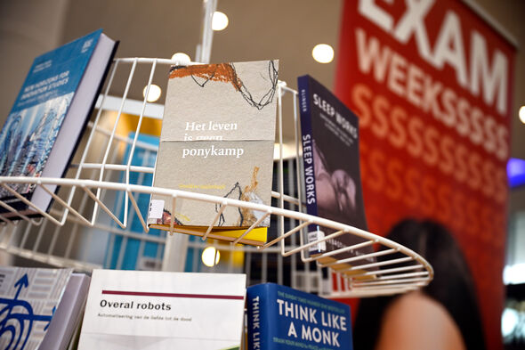 “Daarnaast hou ik van lezen en schrijven. Ik heb ook een eigen boek geschreven. Een bundel met korte teksten, ‘Het leven is geen ponykamp’ heet het. Die heb ik aangeschaft voor de bieb, dus je kunt hem hier lenen.”