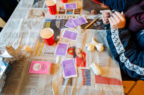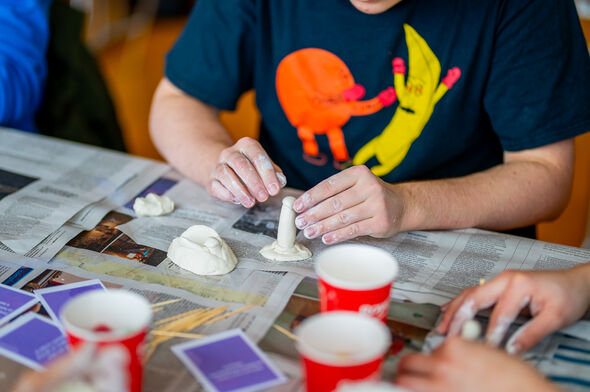 Aan een andere tafel komen naast de praatkaarten ook eigen vragen aan bod. Heb je veel seks-ervaring? Wat doe je met trouw aan een partner die aan de andere kant van de wereld woont momenteel? Ook hier wordt het kleien als een leuke activiteit gezien. “Samen kleien geeft een gevoel van een safe place.”