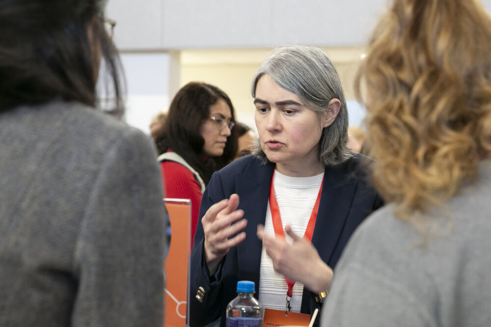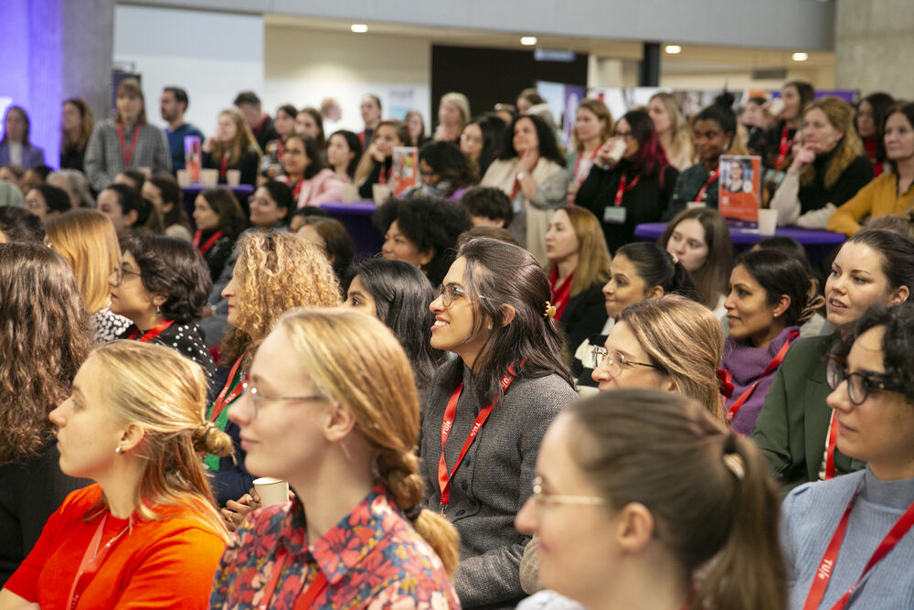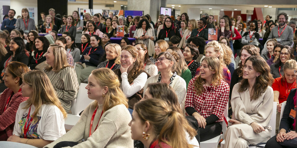 Het hoogtepunt vindt echter plaats op 12 februari, tijdens het meet-up event dat de TU/e samen met WISE Network en Fontys Engineering organiseerde. Ruim tweehonderd deelnemers – voornamelijk vrouwen, maar ook enkele mannen – verzamelen zich hiervoor woensdagmiddag in Atlas. Moderator Cindy de Koning benadrukt in haar opening het doel van de bijeenkomst: vrouwelijke wetenschappers zichtbaar maken, elkaar inspireren en netwerken. “Laten we ervoor gaan dat je vandaag vijftig nieuwe connecties maakt”, moedigt ze de aanwezigen aan.