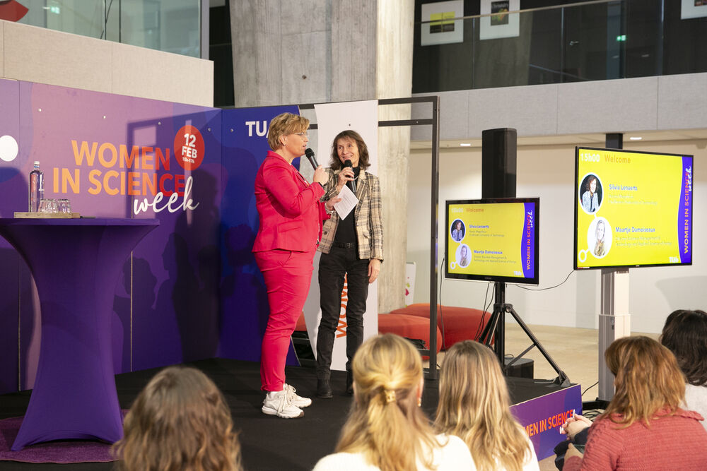 Deze week stond in het teken van de Women in Science Week, met als hoogtepunt het meet-up event dat woensdagmiddag plaatsvond in het Atlas-gebouw. Tijdens deze bijeenkomst luisterden de deelnemers naar de keynote van Tila Pronk, werd de winnaar van de Marina van Damme-beurs bekendgemaakt en kregen de aanwezigen de kans om te speeddaten met negentien vrouwelijke rolmodellen uit de wetenschap en het bedrijfsleven.