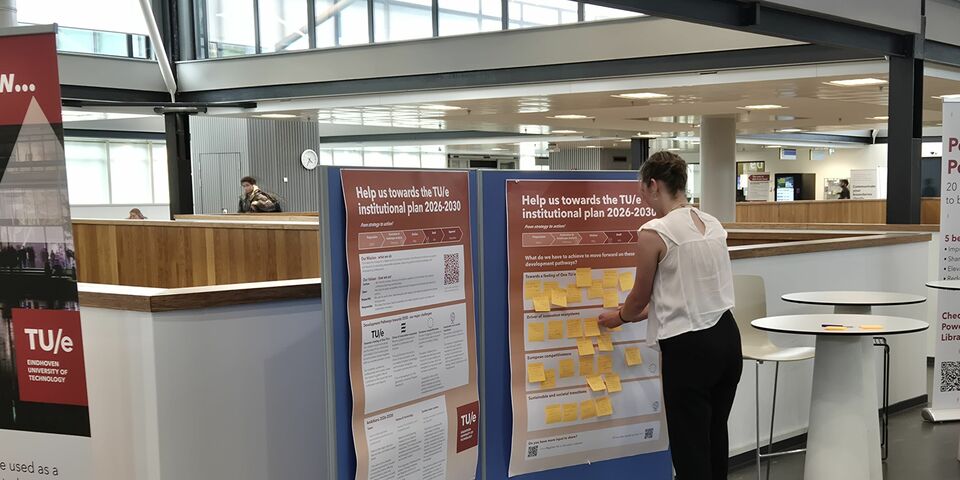 In een van de laatste kamers van Gemini-Zuid waar nog meubels staan, leidt beleidsmedewerker Renee Westenbrink de eerste bijeenkomst waar medewerkers hun input kunnen geven op de beleidsvoornemens van de universiteit. Hij legt uit dat vergeleken met het vorige instellingsplan nu de kernwaarden en de missie van de TU/e voorop staan en er nog maar drie prioriteiten worden gesteld. In 2020, in het vorige instellingsplan, bracht de TU/e zeventien beleidsprioriteiten naar voren.