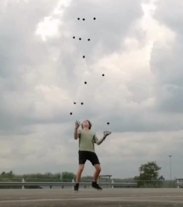 Er zijn twee personen in Nederland die – geregistreerd – de ‘12 bal flash’ kunnen. De andere is Simon á Campo, heel toevallig ook een Industrial Designer. Hij studeerde af in 2018. Ze kennen elkaar uit de jongleerscene. “Simon kon de 12 flash al vijf jaar eerder dan ik, maar ik kan het nu één worp langer.” Dertien vangsten maakt nog geen qualify, maar is wel iets om trots op te zijn.