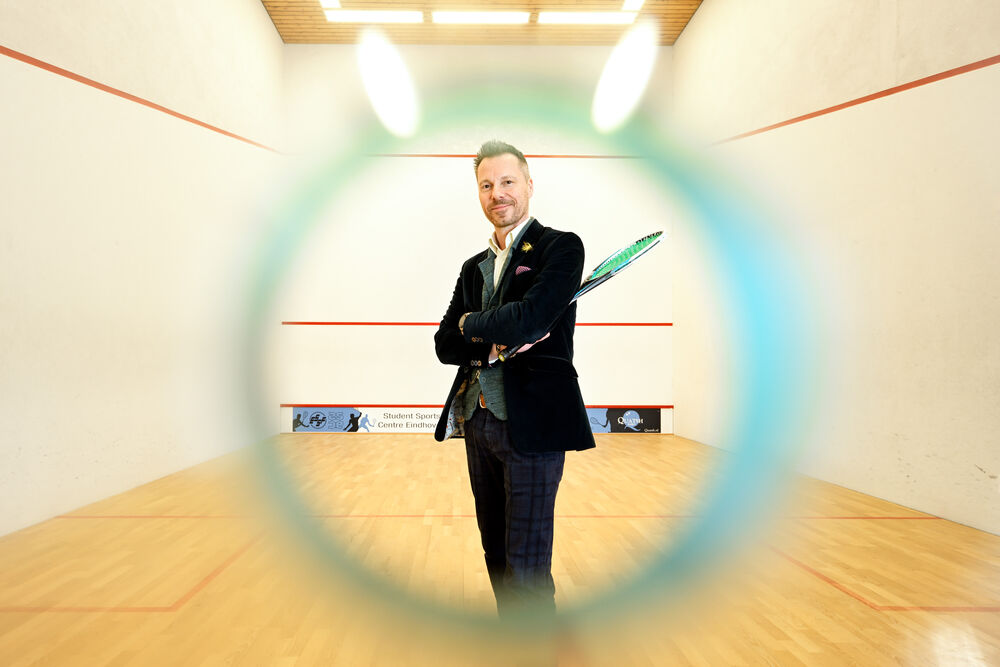 “Ik ben in 1996 aan de TU/e Werktuigbouwkunde gaan studeren en ben toen ook gaan sporten bij het Sportcentrum. Toentertijd tenniste ik veel, maar geleidelijk aan ben ik meer richting squash gegaan. Dan word je lid van de squash-vereniging, daarna word je een keer bestuur en op een gegeven moment word je gevraagd om wat uren training te geven. Zo is eigenlijk het werken bij de universiteit voor mij in 2007 gestart. Ik begon dus als trainer, maar toen de voorgaande hoofdtrainer wegging vroeg hij mij of ik die rol over wilde nemen."