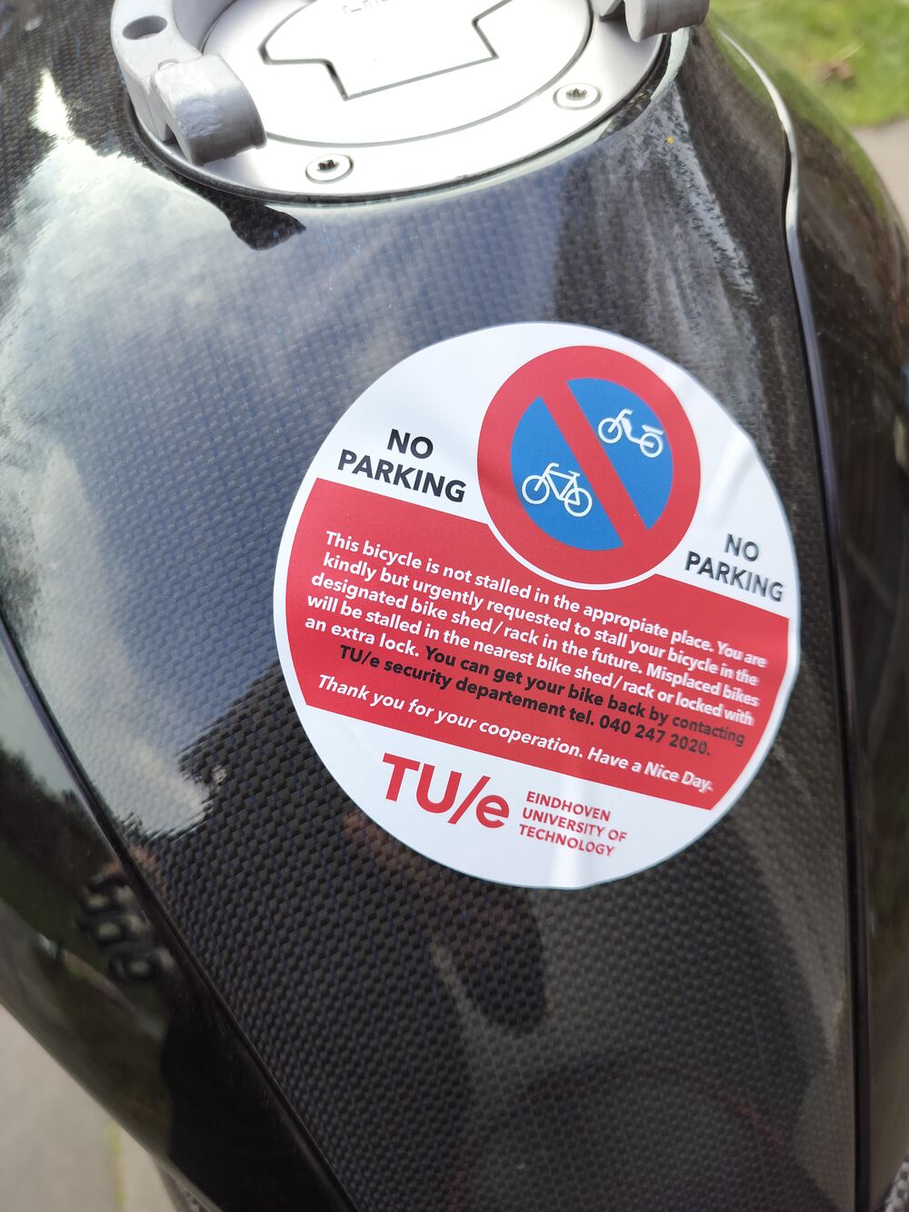 Ook voor een motor is niet altijd parkeerruimte te vinden, weet Jasper Sterk, Research Assistant bij Industrial Design, uit ervaring. “Als ik na negen uur kom, of wanneer ik halverwege de dag een boodschap voor ID moet doen, of als ik terugkom van een bhv-cursus in Fenix, is de motorplek bij Auditorium vol. Vaak staan er veel deelscooters. In zo’n geval ga ik wildparkeren, dichterbij Atlas in het zicht vanuit mijn kantoor.” Dat gaat niet altijd goed: dinsdag heeft hij niet gezien dat de beveiliging een waarschuwingssticker op zijn motor plakte.