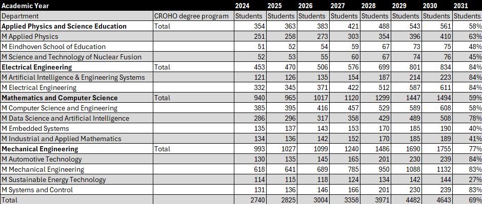 The large increase of master’s students at four departments will also require more facilities. The plans therefore incorporate a new lab building and a cleanroom. The preparation and designing phases will start in 2025, with construction to begin in 2026 and 2027. To accommodate growth until then, a ‘shifting program’ will take place to have extra room in the existing buildings available for the new students and researchers as early as next year.