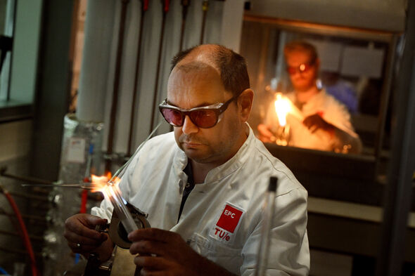 Lommelen: “I’ve been working here for a little over two years now. We had first worked together at Louwers. And seeing as someone was retiring here at TU/e, a vacancy became available. So Bart called me immediately. The world of glassblowing is very small. There are not that many glass instrument makers, so everyone in the field knows each other and when a spot opens up, word travels quickly.”
