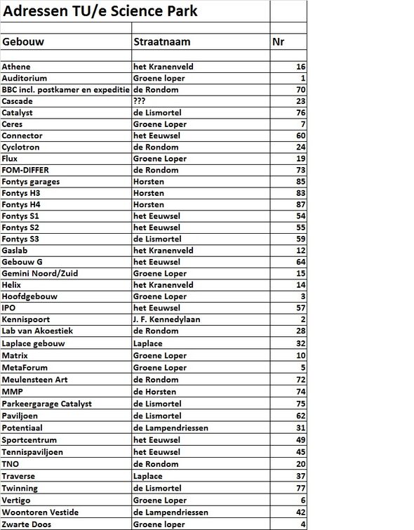 Starting January 15, staff and students will be able to use their own building number and street name. Flux, for example, will come to be located at De Groene loper 19, and the address for MetaForum will be Groene Loper 5. Cascade is the only building with no street name as yet.