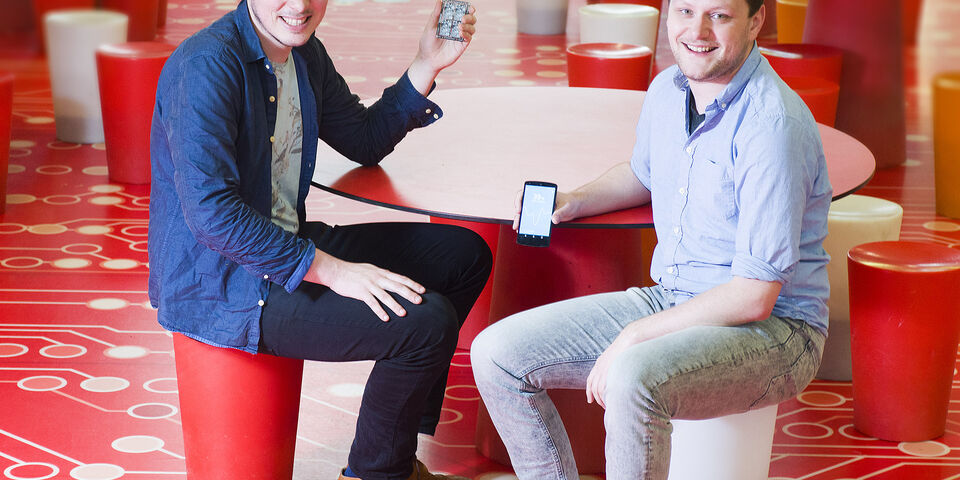 For that, a platform that you can easily plug sensors into and that you can reprogram using a smartphone app - an option the final-year students are still working on - is just perfect. “At the moment we often have to take yet another new printed circuit board and solder components on to it," says Brouwer. "Unless you are a Electrical Engineering student, that's complicated stuff, and the small format of portable devices makes the soldering job especially tricky.”