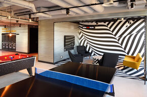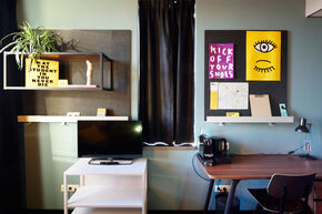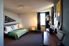 The Student Hotel is geared to the ‘demanding 21st century student and today's design-sensitive travelers'. It is expected that the 400 rooms in the chain's Eindhoven hotel will be occupied mainly by international students and knowledge workers. Staying for relatively long periods, these residents will be able to rent ‘semester rooms’, which provide a few more facilities than the rooms for ‘regular’ hotel guests. In addition, the hotel has trendily styled communal rooms, such as a launderette, lounge and gym. For relaxation, table tennis and foosball tables are provided. And especially for students, the hotel has various classrooms for communal study.