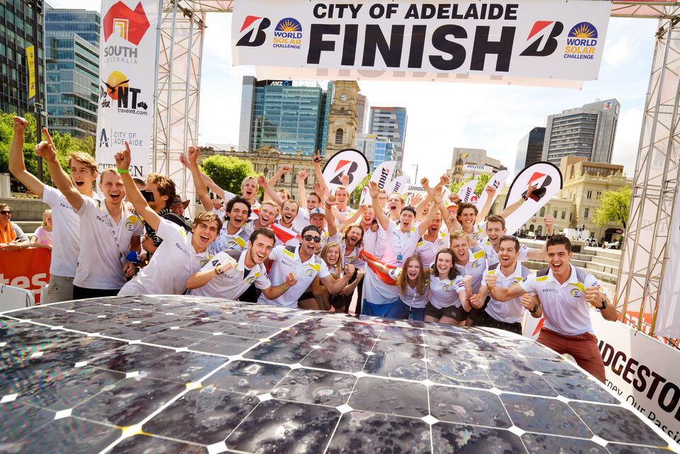 Delft became world champion yesterday in the Challenger Class for racing cars. So various changes to the regulations of the World Solar Challenge, which could have meant a shakeup for the class dominated for years by Dutch teams, haven't led to any changes on the winner's rostrum.