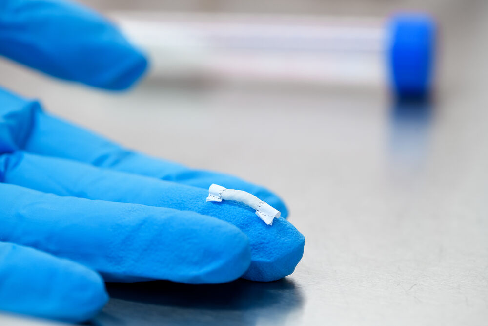 One strategy is to add signal molecules to the implant. These encourage the immune cells to behave in the desired manner: as builders of healthy tissue. Bonito tested this possibility using an implant – a soft, white plastic tube about a centimeter long – that was acting as the aorta in a laboratory rat. “We did indeed see that much more tissue had formed around the implant that we had coated with the molecule interleukin-4, which activates M2 cells. It was amazing to see this three months later, while the role of macrophages tends to be limited to the first few days after implantation.”
