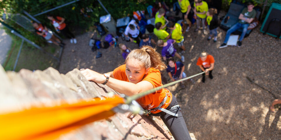 Outside the Luna building, the Tuna Ciudad de Luz (m) and La Tuniña (f) had a special challenge prepared for the students. The Spanish music groups had brought a bag of money (which was actually sand) to be thrown over a beam. A literal translation of a Dutch proverb, which could be loosely translated as throwing money down the drain. They could try this only after they their balance was disturbed by the use of an old guitar. The idea behind this ritual: all the money that is earned by performing must be spent immediately.