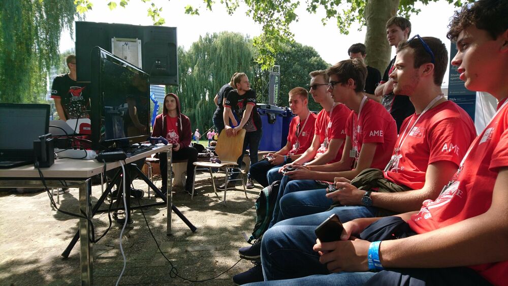 You would expect them in a dark basement, and that is exactly why the members of e-sports club Zephyr thought it was nice - now that the weather allowed it - to sit outside with their controllers, monitors and laptops in front of the Student Sports Centre. For this occasion with Mario Kart – a game normally not played by the Zephyr die-hards, who mainly go for the slightly more competitive games. "We play a lot of League of Legends for example," says member Nout Prins. "About ten teams of six people meet once or twice a week to train."