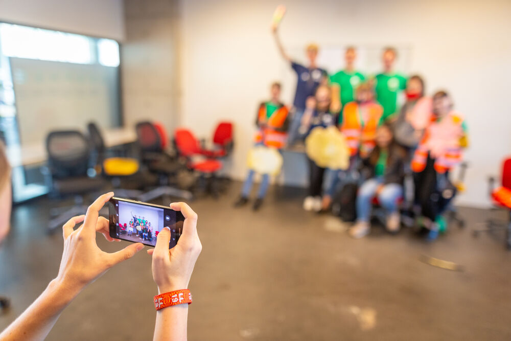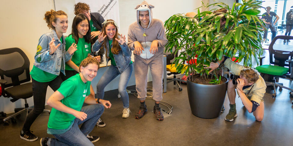 The kids learn that they can do practical assignments at the Bouwkundewinkel which count as electives courses. The students listen submissively, but when they are asked to take a group photo that looks as fun as possible, the kids come to life. The winner – bringing home a meter of beer - will be announced at the after-Intro-drink at the Skybar next week.