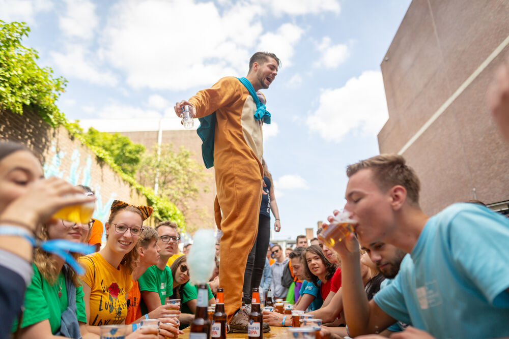 The third day - not only infamous among the participants of the Four Days Marches Nijmegen, but also among participants of the TU/e Introduction Week. You can’t escape the midweek slump Wednesday late afternoon, but Zanger Kafke, Kav Verhouzer and the Hitjeskanon help get the tired intro kids up and running again this evening.