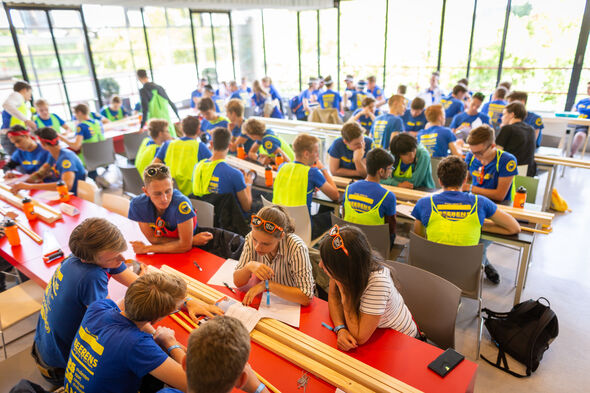 The upcoming applied physicists have to build a hyperloop, bearing in mind the motto "No pressure, the bar is low" of study association Van der Waals. Or, well, they actually have to make a train for the wooden track laid out on the Cascade hill - also a means of transport. They can buy the necessary materials with 'money' in a shop. The money can be obtained by solving tasks related to physics - most materials are spent to pimp the train, because they can also earn points for creativity.