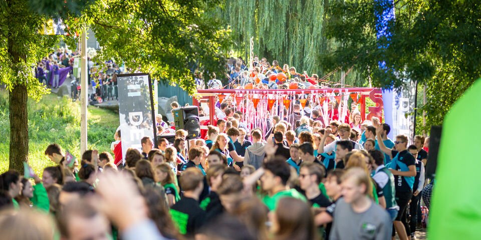 It feels very similar to those first minutes in the midst of the carnival bustle and hustle. Changing your mindset, getting used to it, managing all the stimuli. But the representatives of the various Eindhoven student and study associations guide the roughly two thousand dazed intro kids through the experience on the Limbopad on Monday morning.
