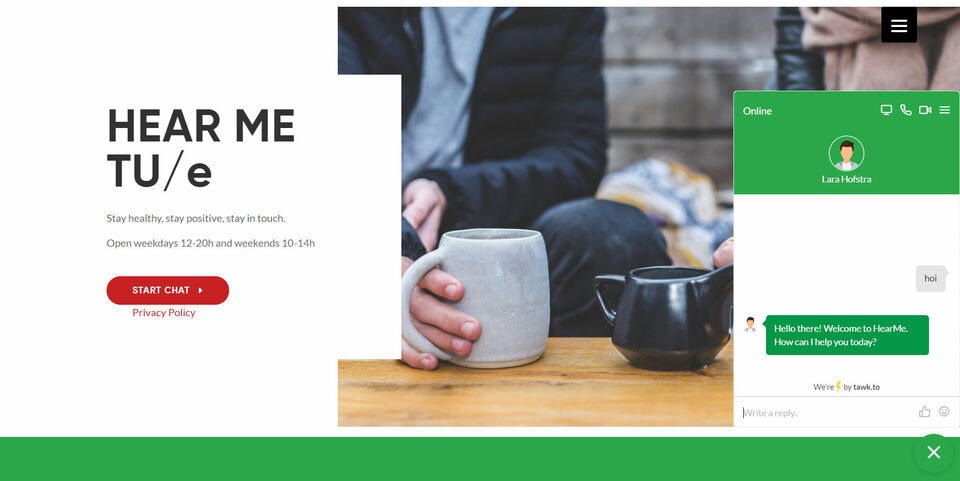 The line is completely anonymous, unless if you opt for video calling of course. “When you call us or approach us for a chat, we see a code, not a name. Your data and chat or (video) call are not stored or used for reference by the TU/e,” Hofstra emphasizes.