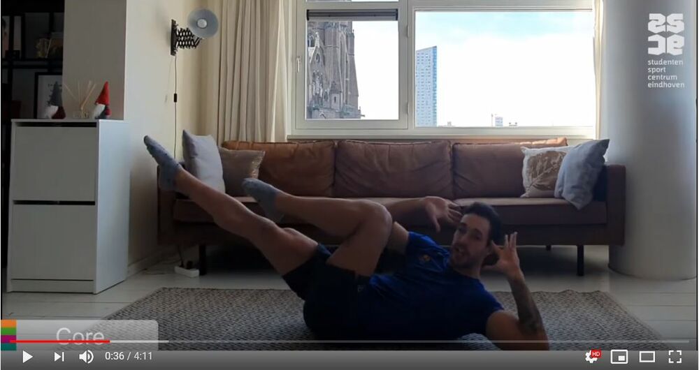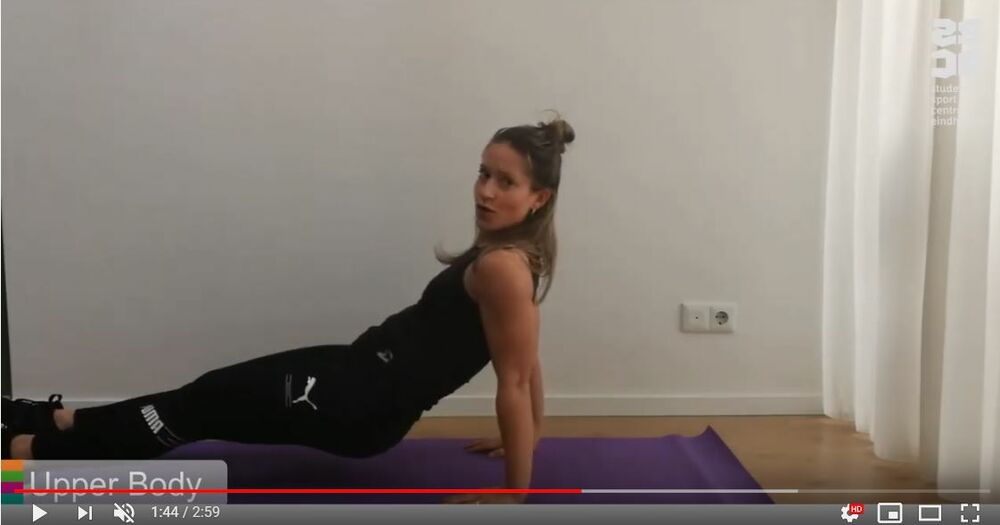 Workout @ home | The instructors at Student Sports Centre Eindhoven want to keep you all fit, so they've made some sports videos that help you to workout from home. On their YouTube Channel they'll regularly post new videos. There are three videos online right now: upper body, lower body and core exercises.