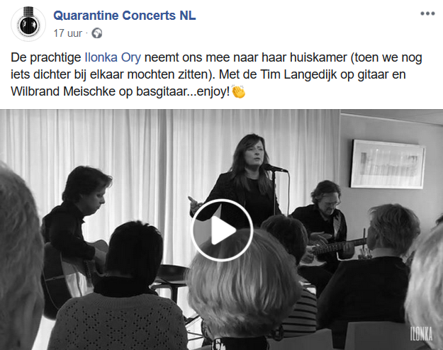 Home concerts | 'We are homebound, but not without a sound'. Get to know the brand new Facebook channel Quarantine Concerts NL, where musicians from all over the world share their home performances with you - sometimes via a live stream. Let yourself be transported briefly to a concert hall or theater while seated in your recliner.