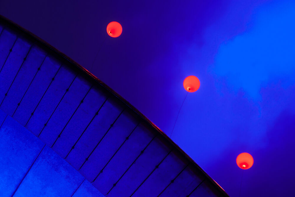 No Eindhoven resident can have missed them last week, suspended in the air across the city, the large red balloons. At first a mystery, then on Thursday it was plain they were part of the GLOW artwork Connecting the Dots. Now they have been removed and the helium stored at TU/e. Photographer Bart van Overbeeke was there and made the following photo reportage.