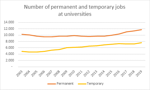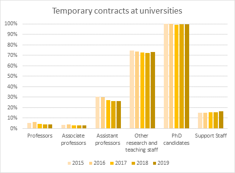 Professors and associate professors remain unaffected by this problem: almost all of them have a permanent position. But as the latest figures show, other academic staff can only dream of that kind of job security.