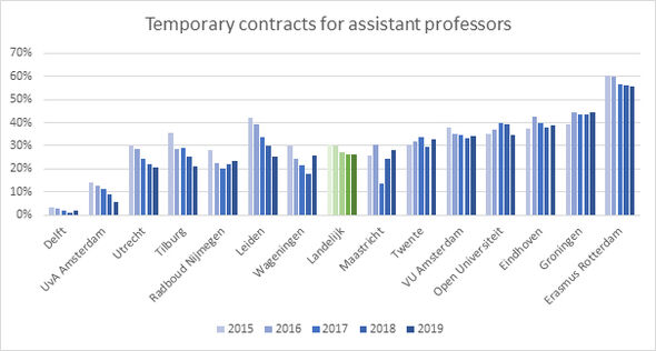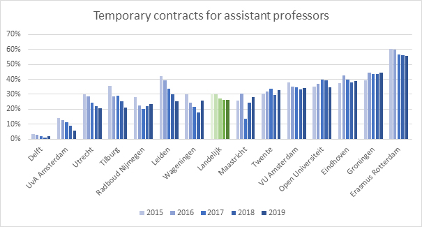 The new CAO is aimed primarily at assistant professors, over 30 percent of whom were on temporary contracts five years ago, compared to 26 percent today. The unions are keen for this downward trend to continue.