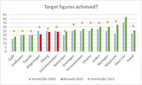 Five years ago universities set targets for the year 2020, and most have managed to surpass their own goals. Only Wageningen University & Research, Tilburg University, and the University of Amsterdam fell short.