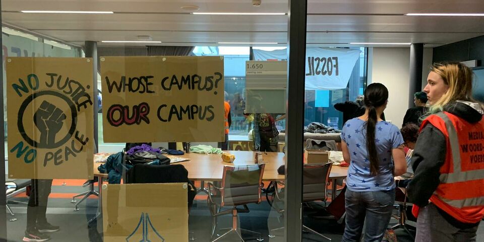 The TU/e spokesperson says that a statement from the Executive Board towards the occupiers of End Fossil Occupy and University Rebellion may be expected on Wednesday, December 7. The protest groups have been occupying Atlas since Monday morning because they have three demands for the TU/e: to declare the climate emergency, to be transparent about the third stream funding of the university and to cut ties with the fossil fuel companies.