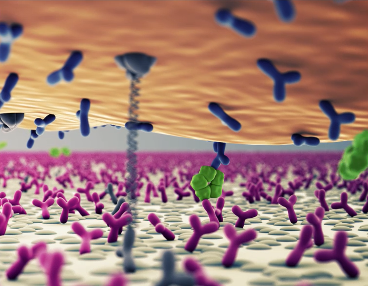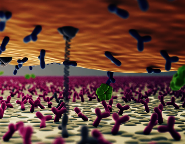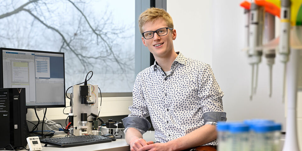 To make just such a biosensor - both continuous and sensitive - Lubken used techniques at the level of a single molecule. This enabled him to separate individual molecules from one another and to determine their concentrations with precision. As the flag, he used a microscopically small particle. In its free state, so he saw under the microscope, this made large movements, but when an individual molecule attached to it, the particle's movements became much smaller, explains Lubken enthusiastically. “It's remarkable how this change in freedom of movement is caused by a single molecular bond.”