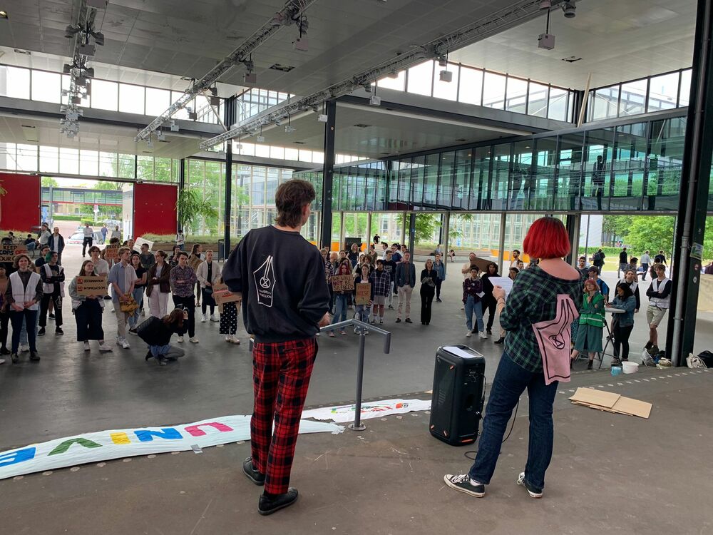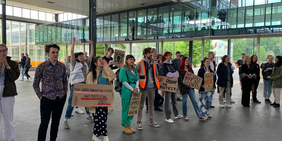 Protesters gather on TU/e campus to express their right to demonstrate