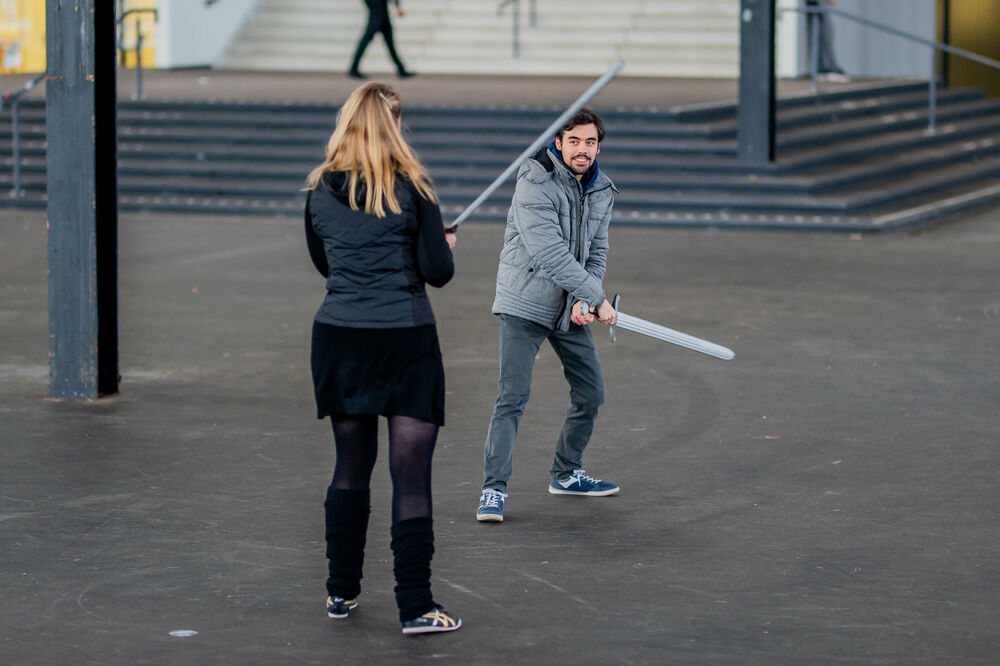 I’m trying to lay low until I’m the last ‘survivor’, at which point there’s nothing else to do but step into the circle. Technical skills aren’t my forte, but I’m enjoying myself immensely! Concentrating on the opponent’s swords puts me in the zone and for a moment I’m in the Middle Ages, until I see a skater flash by in the corner of my eye, bringing me straight back to 2023. I’m momentarily bummed out. Should I come back in two weeks?