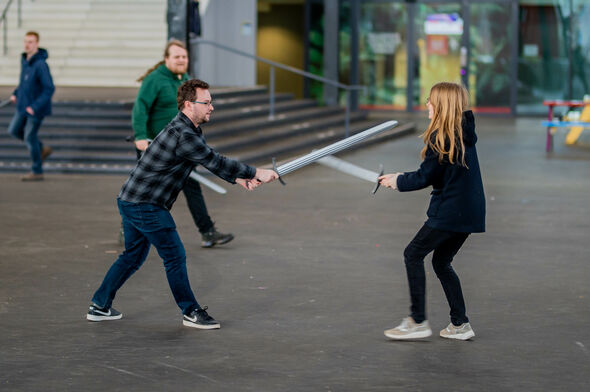 There are groups that take a more authentic approach to swordfighting, with real steel swords and harness-like protection, Laura tells me. “They are involved in Historical European Martial Arts, or HEMA, for example. A lot of historians play this sport to experience and rediscover fighting techniques from old manuscripts.” Interesting as this sounds, it’s probably more of a thrill than this rookie can handle.