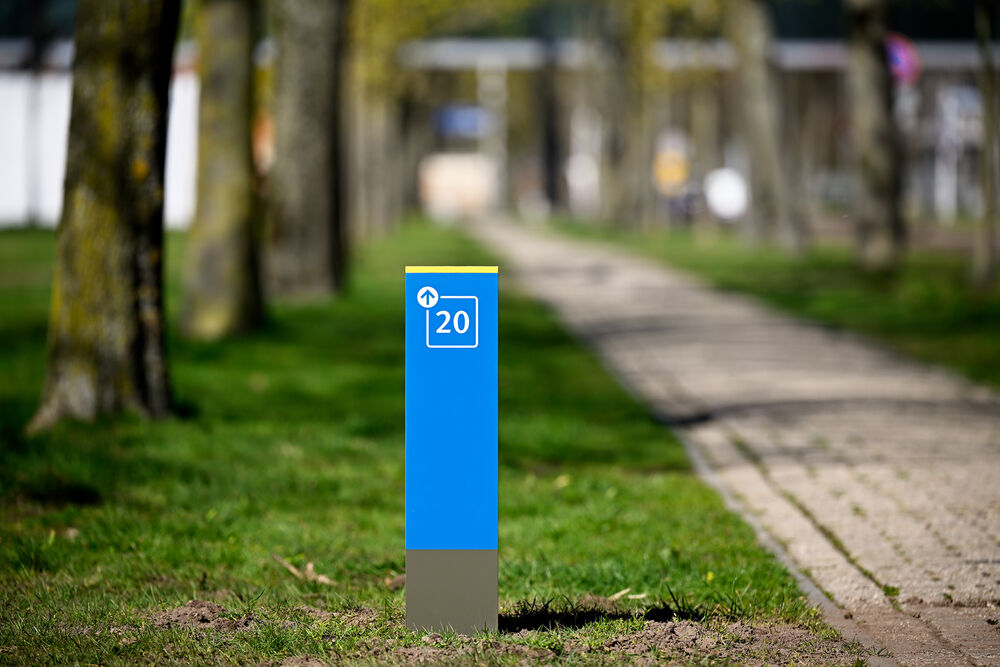 The circular routes can now be followed from their starting points at Vertigo, Atlas, MetaForum, Gemini, Auditorium, Flux and Neuron. Before setting off, walkers can pick up a tea and coffee nearby, and there are places to sit down for a moment beforehand and afterwards. Lockers are available in the buildings, handy for walkers wanting to leave their gear somewhere before setting off. The various routes are numbered and blue signposts outside these buildings indicate which route starts where. “There are thirty signposts and we thought long and hard about the right places to site them, so that they are easy to follow from both directions.”