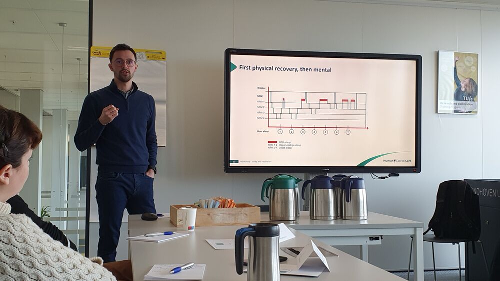 What I personally like most about the course is that twelve of us TU/e employees get to talk about a shared personal problem. It brings a sense of recognition and with that, even some comfort. It’s nice to know that I’m not the only one. The instructor says as much: “63 percent of Dutch people say they are dissatisfied with their sleep quality”, but numbers like that don’t mean as much to me as a colleague who’s been complaining about sleeping poorly for two years. I go home with renewed optimism.
