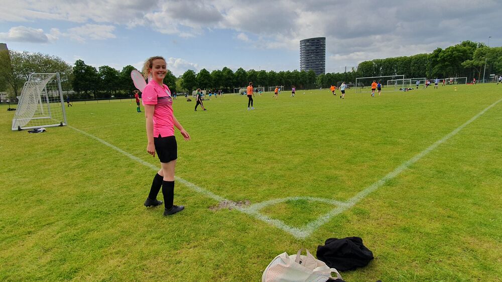 The atmosphere at sports park De Hondsheuvels is relaxed, there is little tension in the air. “It’s very low key today,” says Jolijn Martens. She usually plays for Pusphaira’s Ladies 1 team, but today she’s one of the stars of the Pattern team. “Everyone is welcome to join. What matters is that everyone has a great day, it has nothing to do with competitiveness. It’s not about ending up on the podium, as long as you end up at the Feestfabriek on Stratumseind.”