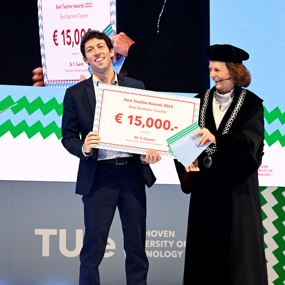 The award for Best Bachelor Teacher 2023 was awarded to Florent Gauvin of the Architecture, Urbanism and Building Sciences bachelor’s program. The jury appreciated his practical assignments that put students to work creating something that is not just aesthetically pleasing, but actually works in practice. For the master’s programs, the 2023 Best Master Teacher award went to Karel van Donselaar of Industrial Engineering. He was chosen by the jury for his motivating and clear approach to imparting knowledge.