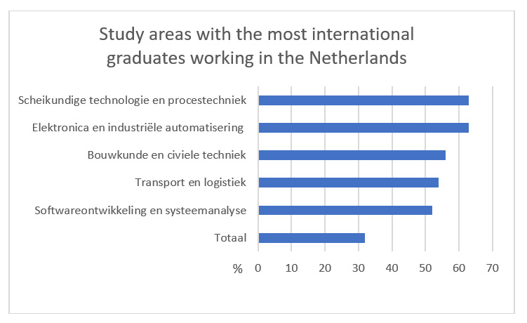 In any case, the employment market is certainly having an influence on the likelihood of whether graduates will stay. According to CBS, the study programs with the largest number of graduates staying in the country are almost all of a technical nature. Technology is a so-called ‘shortfall sector’, where many people are required.