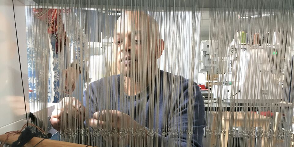 In the main photo at the top: Chet Bangaru at a loom in ID's Wearables Lab, photographed by colleague Kristina Andersen.